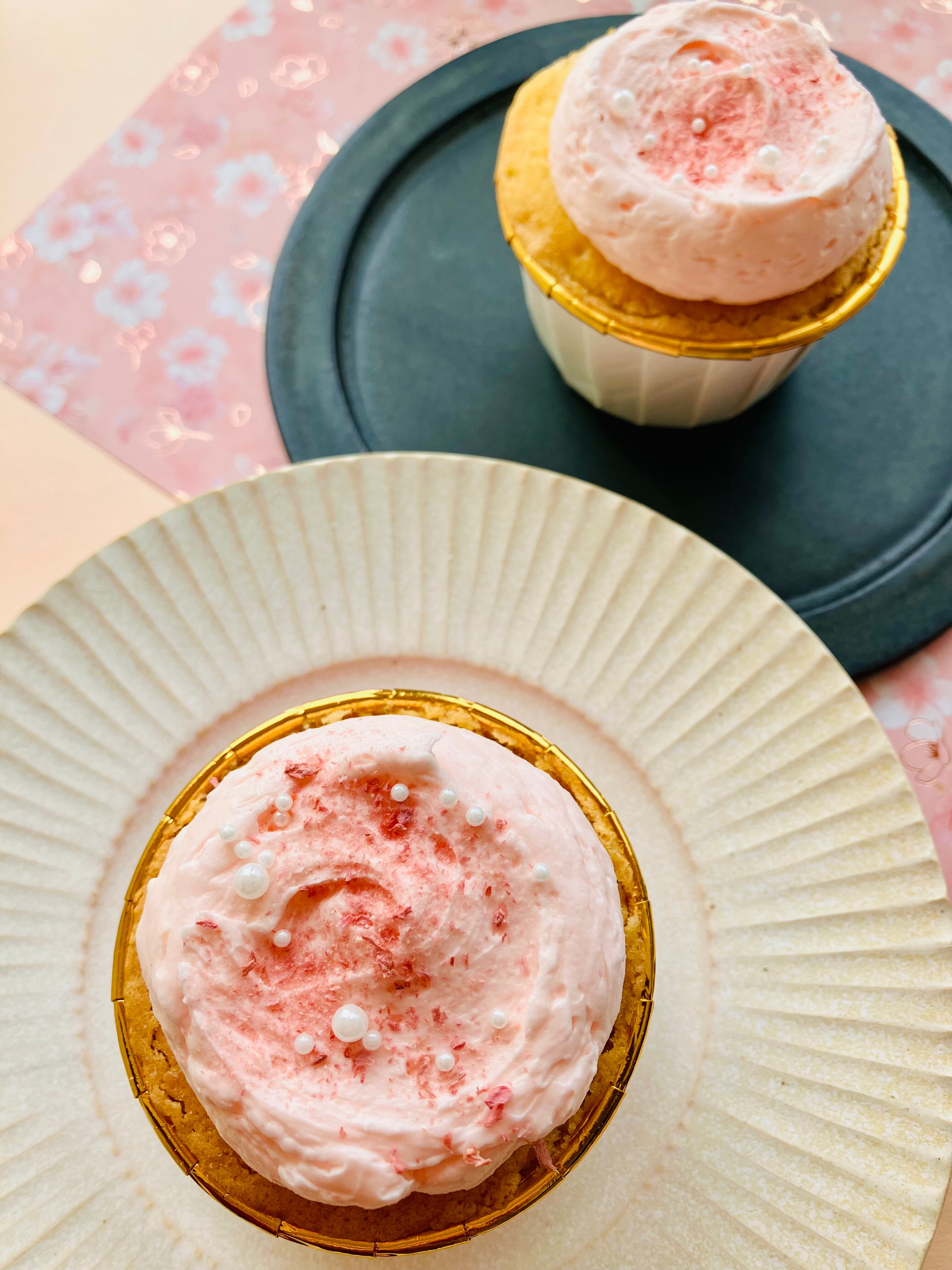 ■春の訪れを感じる桜カップケーキ!