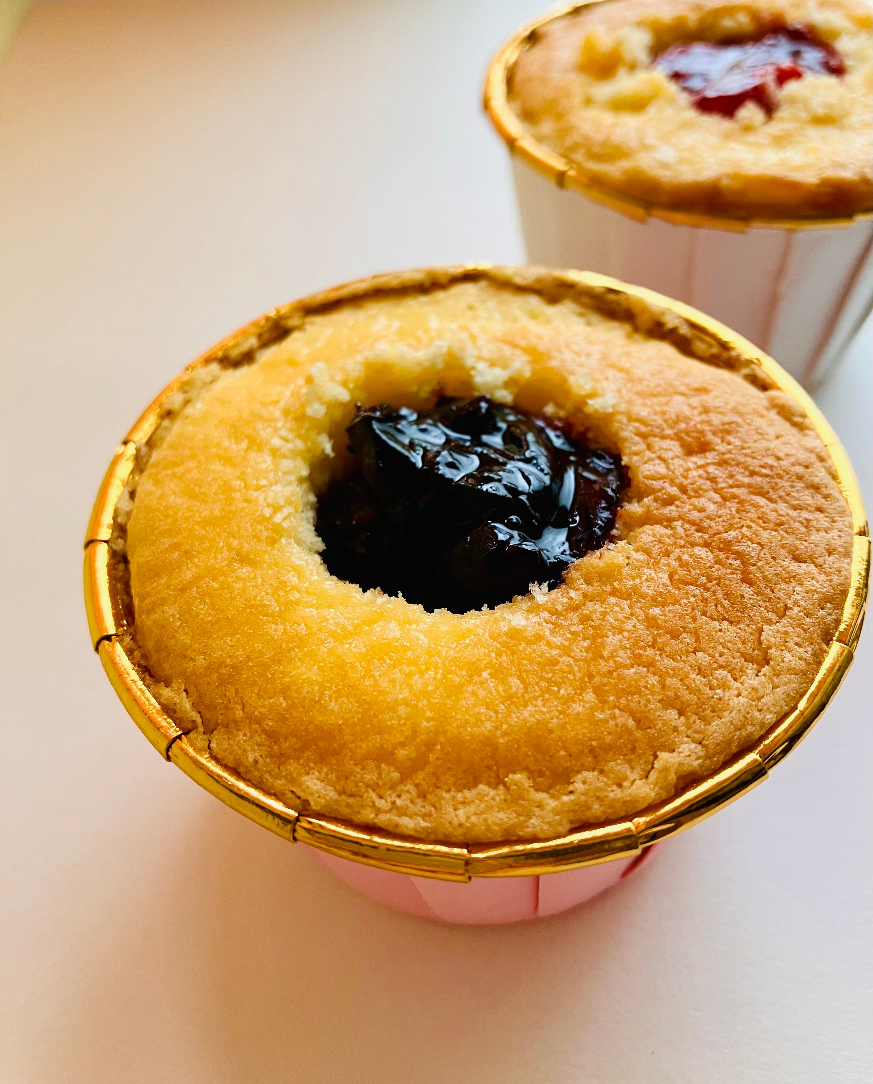 もう一つはふわふわのバニラスポンジにホワイトチョコレートを加えた桜風味のバタークリームカップケーキ。フィリングは自家製チェリーのジャム(手に入らない場合はミックスベリーに変更になる場合が有ります)